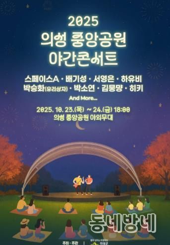 동네방네 김형규 기자 | 의성군은 지난 7월 1일 개원한 도심 속 힐링공간 ‘의성 중앙공원’에서 오는 23일부터 24일까지 양일간 오후 6시에 ‘2025 의성 중앙공원 야간콘서트’를 개최한다고 밝혔다.