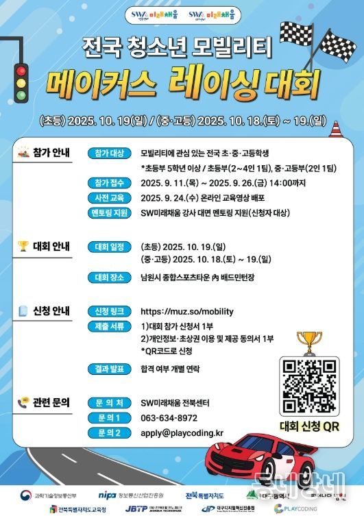 동네방네 김형규 기자 | 남원시가 오는 10월 18일부터 19일까지 남원종합스포츠타운 내 배드민턴장에서 ‘SW미래채움(전북) 전국 청소년 모빌리티 메이커스 레이싱 대회’를 개최한다.