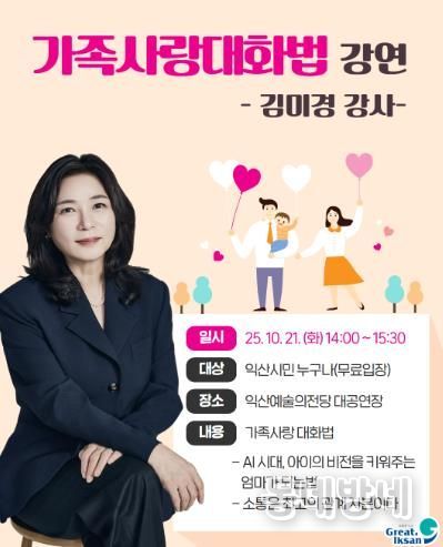 익산시 관계자는 "교육은 가정과 지역이 함께 키워가는 백년지대계"라며 "이번 강연이 시민들에게 교육의 가치를 다시금 생각하고, 아이들의 미래를 함께 고민하는 의미 있는 시간이 되길 바란다"고 말했다.