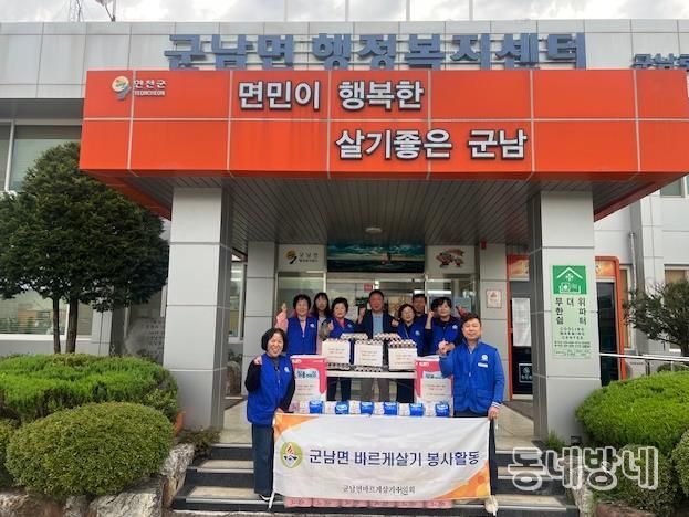 군남면 바르게살기운동협의회는 매년 관내 취약계층을 위해 생필품 키트 등 후원물품을 기탁하고 있으며, 지역의 어려운 이웃을 위해 솔선수범하여 따뜻한 도움의 손길을 보내고 있다.