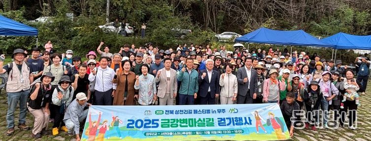 동네방네 김형규 기자 | 전북특별자치도와 무주군이 공동 주최한 ‘2025 전북 삼천리길 페스티벌 in 무주 – 아름다운 금강변 마실길 걷기’ 행사가 16일 무주군 부남면 금강변 일원에서 200여 명이 참여한 가운데 성황리에 열렸다.