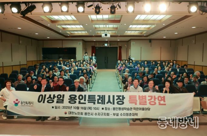동네방네 김형규 기자 | 이상일 용인특레시장은 16일 오전 수지구 큰어울마당에서 대한노인회 용인시 수지구지회가 운영하는 수지청춘노인대학 어르신 100여 명을 대상으로 미술 특강을 했다.