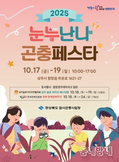 동네방네 김형규 기자 | 경상북도 잠사곤충사업장은 17일부터 19일 3일간 잠사곤충사업장 일원에서‘2025 눈누(에)난나(비) 곤충페스타’를 개최한다.