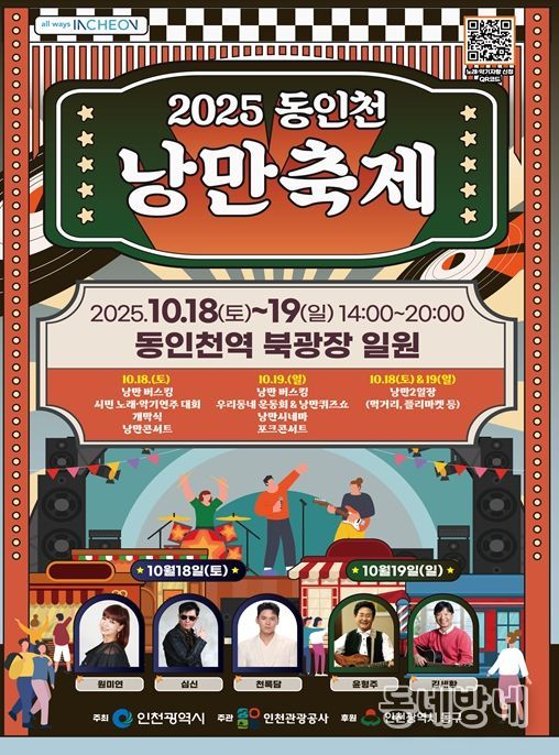동네방네 김형규 기자 | 인천광역시는 오는 10월 18일부터 19일까지 이틀간 동인천역 북광장에서 ‘2025년 동인천 낭만축제’를 개최한다고 밝혔다.