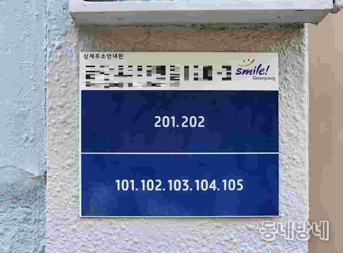 동네방네 김형규 기자 | 부산시 금정구는 주민의 생활 속 주소 활용 편의성을 높이기 위해 다가구주택 등 건물 240곳에 도로명주소 상세주소를 직권으로 부여하고 상세주소 안내판 설치를 완료했다고 17일 밝혔다.