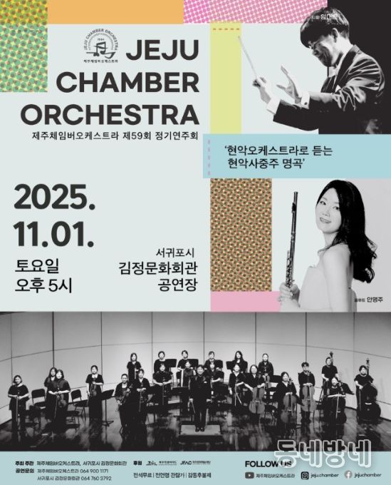 동네방네 김형규 기자 | 서귀포시는 2025년 공연장 상주단체 육성지원 사업의 일환으로, 제주체임버오케스트라의 '제59회 정기연주회' 공연을 오는 11월 1일 오후 5시에 김정문화회관에서 개최한다고 밝혔다.