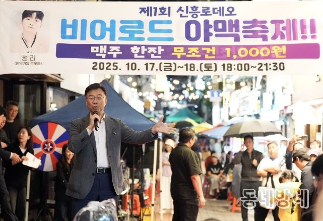 동네방네 김형규 기자 | 신상진 성남시장은 17일 저녁 신흥로데오거리 종합시장 먹자골목에서 열린 ‘제1회 신흥로데오 비어로드 야맥축제’ 개막식에 참석해 관계자들을 격려하고 시민들과 소통했다.