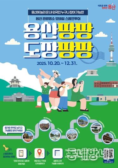 동네방네 김형규 기자 | 서울 용산구가 오는 20일부터 12월 31일까지 용산의 주요 관광명소를 모바일로 즐길 수 있는 ‘용산 팡팡! 도장 팡팡! 2025 용산구 관광명소 모바일 스탬프투어’를 운영한다.