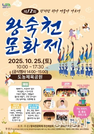 동네방네 김형규 기자 | 남양주시는 오는 10월 25일 도농체육공원에서 ‘제12회 왕숙천문화제’를 개최한다.