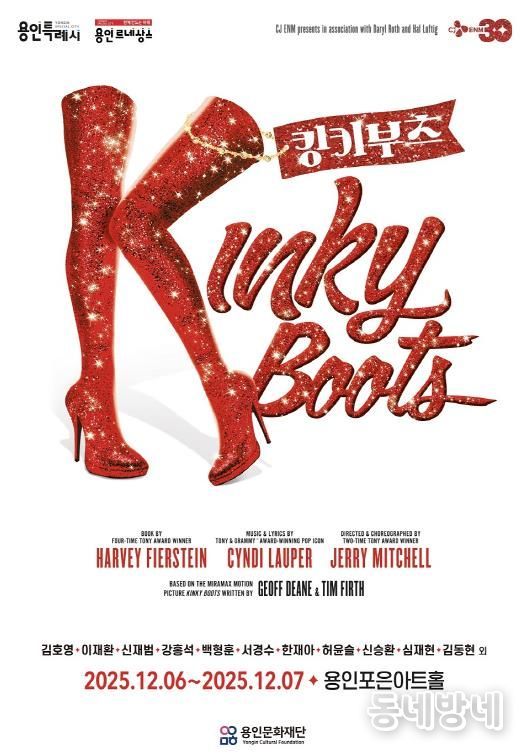 동네방네 김형규 기자 | 용인문화재단은 오는 12월 6일부터 7일까지 용인포은아트홀에서 뮤지컬 ‘킹키부츠’를 선보인다. 이번 공연은 양일간 오후 2시와 7시, 총 4회 진행되며, 관람 연령은 만 8세 이상으로 미취학 아동은 입장이 불가하다.