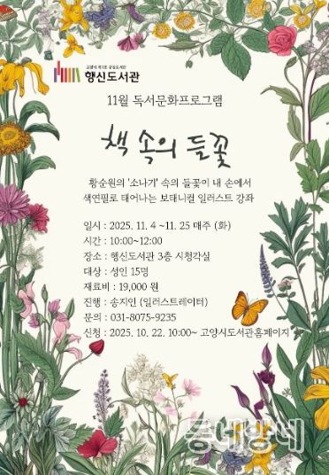 동네방네 김형규 기자 | 고양특례시 행신도서관은 성인을 대상으로 ‘책 속의 들꽃’을 운영한다고 밝혔다.