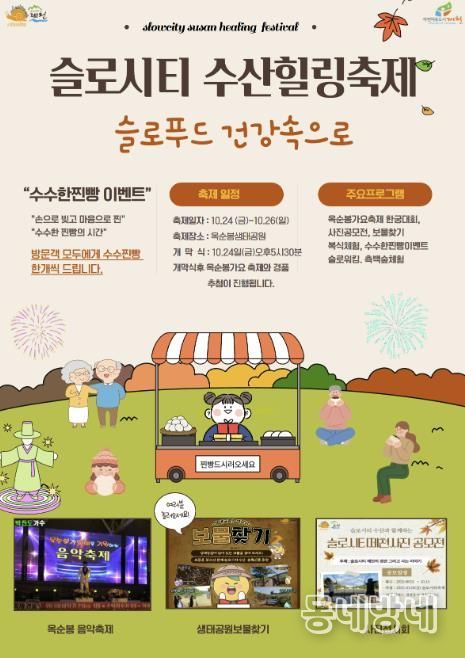 동네방네 김형규 기자 | ‘2025 슬로시티 수산힐링축제’가 오는 10월 24일부터 26일까지 3일간 충북 제천시 수산면 옥순봉 생태공원 일원에서 열린다.