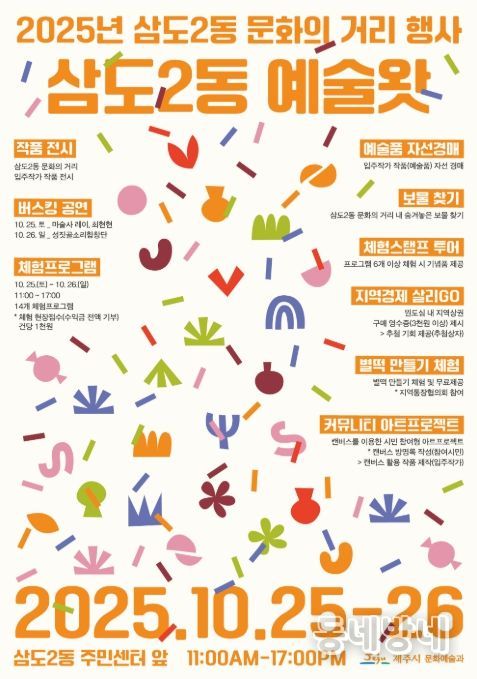 동네방네 김형규 기자 | 제주시는 10월 25일부터 26일까지 이틀간 삼도2동 주민센터 일원에서 ‘2025년 삼도2동 문화의 거리’ 행사를 개최한다.