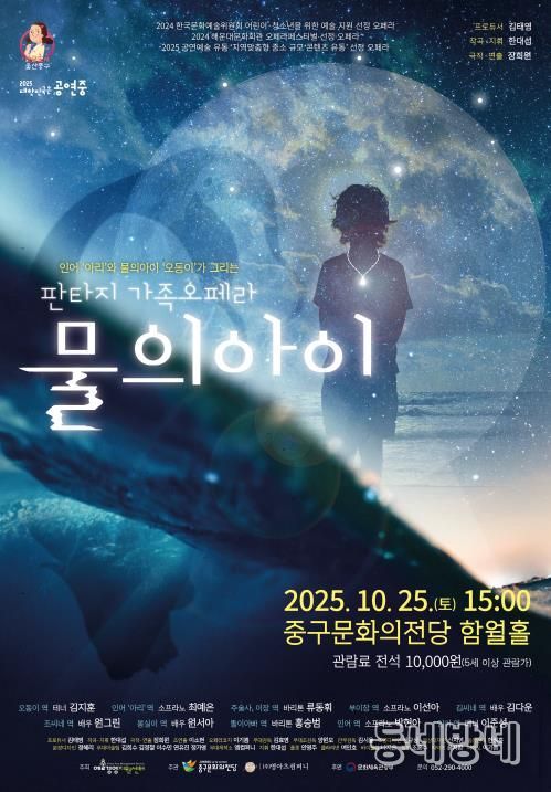 동네방네 김형규 기자 | 울산 중구문화의전당이 오는 10월 25일 오후 3시 중구문화의전당 함월홀에서 가족 오페라 '물의 아이' 기획공연을 개최한다.