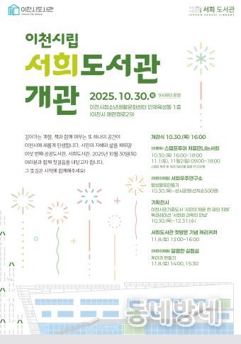 동네방네 김형규 기자 | 이천시는 오는 10월 30일, 시민들의 지식과 문화 향유를 위한 새로운 공간인 ‘이천시립서희도서관’을 공식 개관한다고 밝혔다.