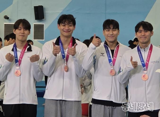 또한 김영현 선수는 자유형 1500m에서 은메달, 자유형 400m에서 동메달을 차지하며 장거리 종목 강자로서 안정된 경기력을 선보였으며, 고성민·김민석·김영현·윤인서 선수가 함께 출전한 계영 800m 단체전에서도 동메달을 획득해 팀워크의 진가를 발휘했다.