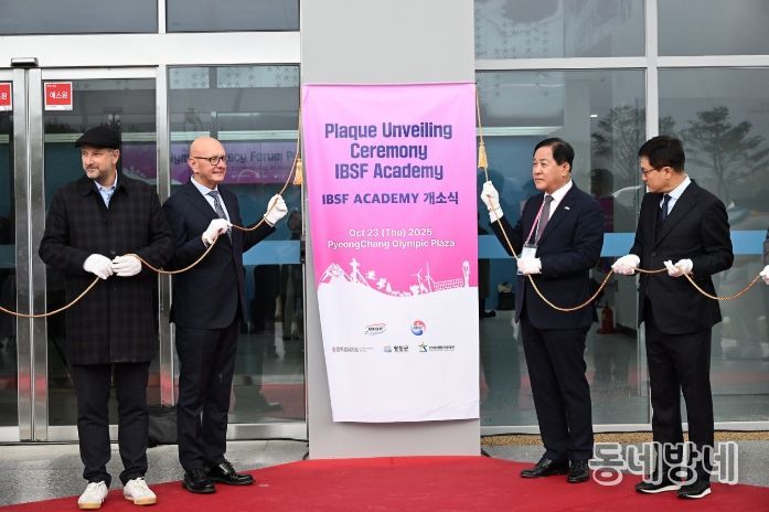 동네방네 김형규 기자 | 2025 세계올림픽도시연맹 총회가 한창 진행 중인 평창올림픽플라자에서는 오늘(10월 23일) 오후, 이보 페리아니(Ivo Ferriani) IBSF(국제봅슬레이스켈레톤연맹) 회장과 전찬민 IBSF 부회장 겸 KBSF(대한봅슬레이스켈레톤연맹) 회장, 최성희 문체부 체육협력관, 심재국 평창군수 그리고 원윤종 등 국내외 썰매 종목 관계자와 선수들이 참석한 가운데 'IBSF 아카데미 평창사무소 개소식'이 열렸다.