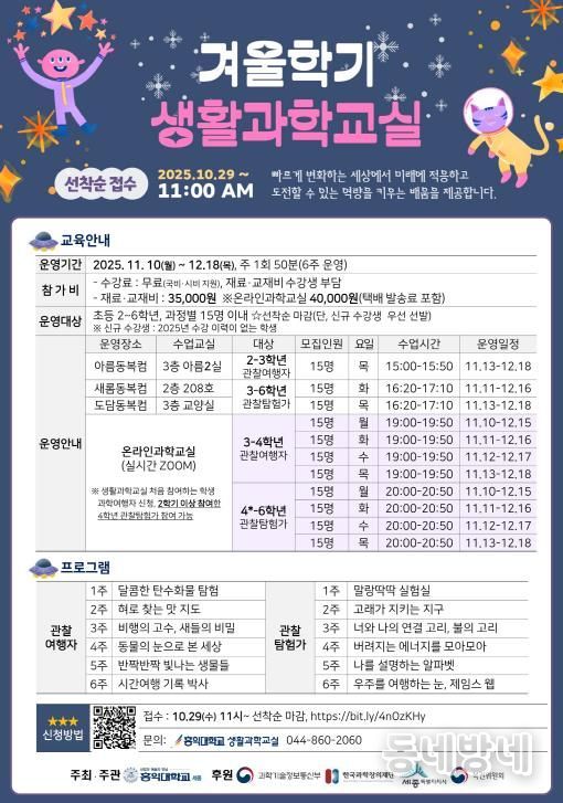 생활과학교실은 오는 29일 오전 11시부터 세종시에 거주하는 초등학교 2~6학년 학생이라면 누구나 신청할 수 있다.