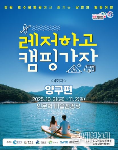 동네방네 김형규 기자 | 강원관광재단과 양구군이 가을 정취 속에서 캠핑과 레저를 동시에 즐길 수 있는 ‘레저하고 캠핑가자 in 양구’ 행사를 오는 10월 31일부터 11월 2일까지 3일간 인문학마을캠핑장 일원에서 개최한다.