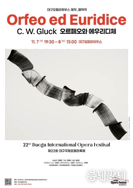 동네방네 김형규 기자 | 대구문화예술진흥원 대구오페라하우스는 제22회 대구국제오페라축제의 폐막작으로 글룩의 대표 오페라 ‘오르페오와 에우리디체’를 오는 11월 7일 오후 7시 30분, 11월 8일 오후 3시에 대구오페라하우스 대극장에서 선보인다.
