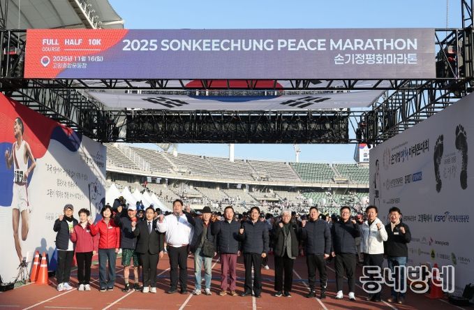 동네방네 김형규 기자 | 16일 ‘2025 손기정 평화마라톤대회’가 열린 고양종합운동장, 이동환 고양특례시장은 환영사를 통해 “광복 80주년을 기념한 뜻깊은 대회, 도로 위를 맘껏 달리며 자유를 만끽하고 광복의 의미를 되새기길 바란다”고 말했다.
