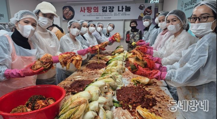 동네방네 김형규 기자 | 경산시가족센터(센터장 정유희)는 20일 현대모비스 경북부품사업소와 사단법인 한국외식업중앙회경북지회경산시지부의 후원으로 결혼 이민자들과 비나리 가족봉사단원들이 함께 직접 담근 김치를 지역 내 홀몸 어르신과 아동 생활시설 등에 전달하는 봉사활동을 진행했다.