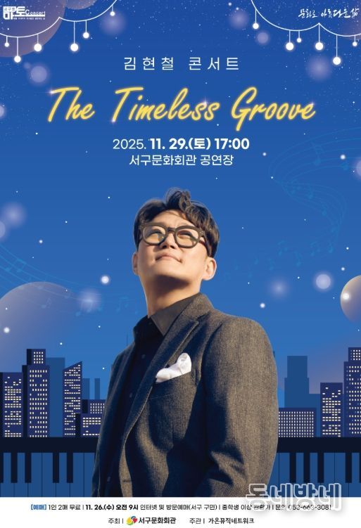 동네방네 김형규 기자 | 서구문화회관은 11월 29일 오후 5시 서구문화회관 공연장에서 2025 서구愛 마토콘서트 피날레로‘김현철 콘서트 : The Timeless Groove’를 개최한다.