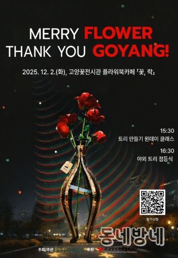 동네방네 김형규 기자 | 2025년 한 해 꽃을 사랑해 준 고양시민들에게 감사한 마음을 전하는 화훼 문화행사 ‘메리 플라워, 땡큐 고양!(Merry Flower, Thank you GOYANG!)’이 오는 12월 2일 고양꽃전시관 (플라워북카페)에서 개최된다.