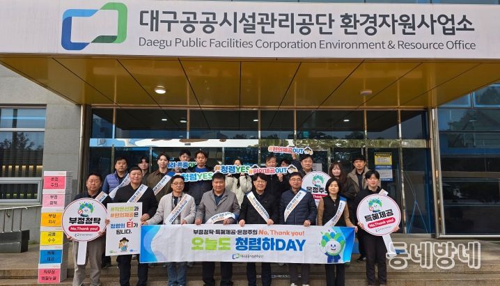 동네방네 김형규 기자 | 대구공공시설관리공단 환경자원사업소는 11월 25일, 청렴문화 확산과 지역사회 청렴도 향상을 위해 ‘청렴하DAY’ 협동캠페인을 진행했다.