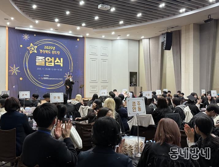 동네방네 김형규 기자 | 안동시학교밖청소년지원센터이 2025년 11월 25일 안동 그랜드호텔에서 개최된 ‘2025년 경상북도 꿈드림 졸업식’에서 관내 학교 밖 청소년들의 졸업을 축하했다.