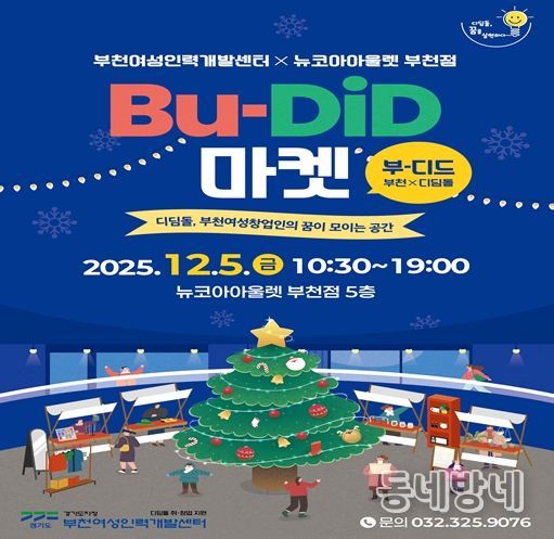 동네방네 김형규 기자 | 부천여성인력개발센터는 Bu-DiD〔부-디드, 부천X디딤돌〕마켓을 12월 5일 10시 30분부터 19시까지 뉴코아 부천점 5층에서 개최한다.