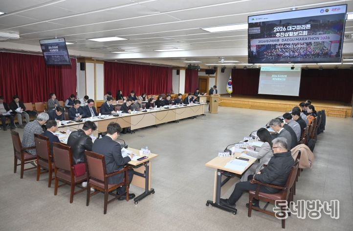 동네방네 김형규 기자 | 대구광역시는 11월 28일 오후 3시, 동인청사 대회의실에서 김정기 대구광역시장 권한대행 주재로 28개 관련 부서 및 유관기관장이 참석한 가운데, ‘2026대구마라톤대회 추진상황 점검회의’를 열고 분야별 준비 상황을 점검했다.