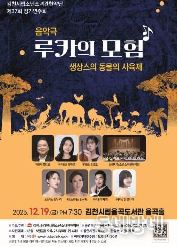 동네방네 김형규 기자 | 김천시문화예술회관은 12월 19일 금요일 오후 7시 30분에 시립율곡도서관 율곡홀에서 시립소년소녀관현악단 제37회 정기연주회를 개최한다.