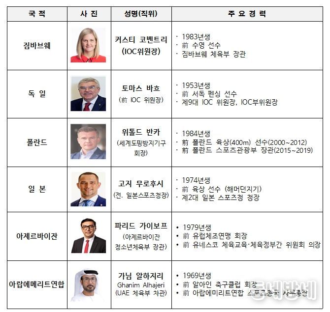 어제(2일)는 총회 개회식에 참석한 ▲커스티 코벤트리(Kirsty Leigh Coventry) 국제올림픽위원회(IOC) 위원장 ▲토마스 바흐(Thomas Bach) 전(前) 국제올림픽위원회(IOC) 위원장 ▲위톨드 반카(Witold Banka) 세계도핑방지기구 회장 ▲고지 무로후시(Koji Murofushi) 전(前) 일본 스포츠청장 등과 만남을 가졌다.