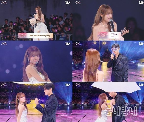 동네방네 김형규 기자 | 가수 최예나(YENA)가 'AAA' 베스트 뮤지션 상을 수상, 추영우와 설렘 퍼포먼스로 존재감을 드러냈다.