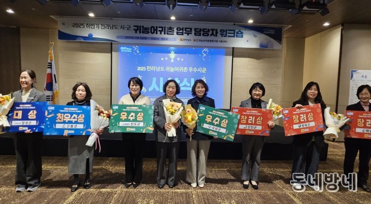 동네방네 김형규 기자 | 전라남도는 10일까지 이틀간 진도 쏠비치에서 도·시군 귀농어귀촌 업무담당자 워크숍을 열어 귀농어귀촌 교육과 홍보, 유입실적 등에서 높은 평가를 받은 장성군에 ‘2025 귀농어귀촌 업무 종합평가’ 대상을 수여했다.