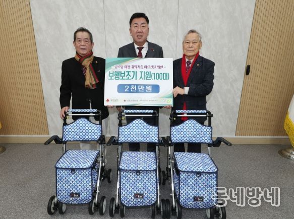 동네방네 김형규 기자 | (사)대한노인회청주시지회는 11일 청주지역 취약계층 어르신을 지원하기 위해 청주시에 성인용보행기(보행보조기) 100대(2천만원 상당)를 전달했다.