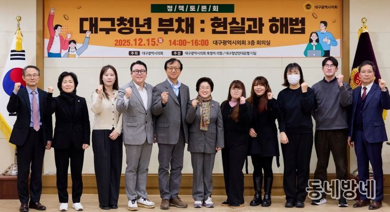 동네방네 김형규 기자 | 대구광역시의회는 12월 15일 오후 2시, 시의회 3층 회의실에서 “대구 청년 부채 : 현실과 해법”을 주제로 청년 부채 문제 해결을 위한 토론회를 개최했다.