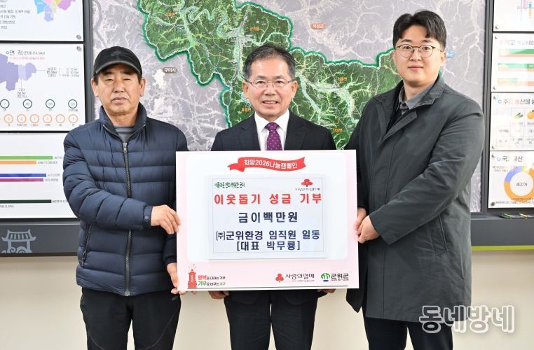 동네방네 김형규 기자 | 지난 15일, ㈜군위환경(대표 박무룡)에서 희망2026나눔캠페인 이웃돕기 성금 이백만원을 기부했다. 군위환경은 지난 나눔캠페인에도 이백만원을 기부하며, 매년 어려운 이웃들을 위해 나눔문화 확산에 동참해 오고 있다.