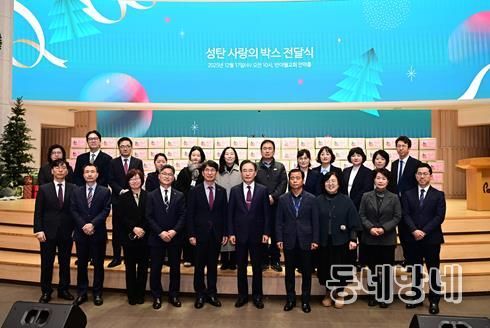 동네방네 김형규 기자 | 반야월교회는 지난 17일, 성탄절을 앞두고 관내 저소득가구와 환경미화 종사자를 위해 성탄박스 1천200상자를 동구청에 기탁했다.