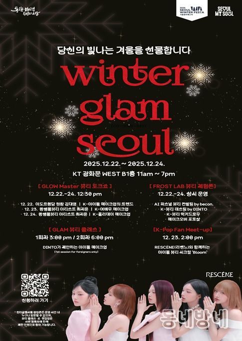 동네방네 김형규 기자 | 서울시가 서울윈터페스타를 찾은 국내외 관광객에게 차별화된 한류 경험을 제공하기 위해 K-뷰티를 주제로 한 ‘윈터 글램 서울(Winter Glam Seoul)’ 팝업 행사를 12월 22일부터 24일까지 3일간 개최한다.
