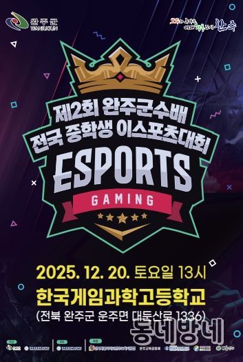 동네방네 김형규 기자 | 완주군이 전국 중학생을 대상으로 한 공식 e스포츠 대회를 개최한다.