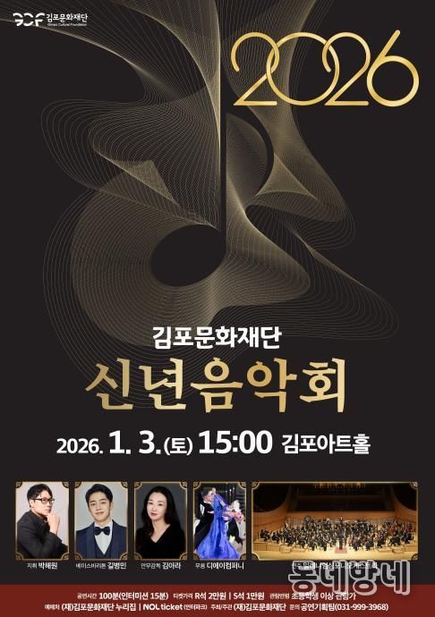 동네방네 김형규 기자 | (재)김포문화재단이 새해 첫 무대로 내년 1월 3일 김포아트홀에서 '2026년 김포문화재단 신년 음악회'를 개최한다고 밝혔다.