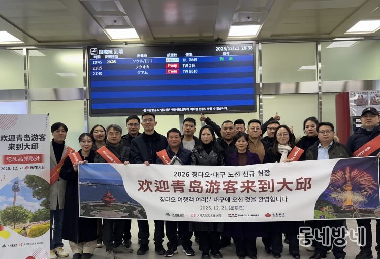동네방네 김형규 기자 | 대구광역시와 대구문화예술진흥원 관광본부는 대구국제공항에서 ‘칭다오-대구’ 신규 노선 취항을 맞아 중국인 관광객을 위한 환영 행사를 마련하고 본격적인 맞이에 돌입했다.