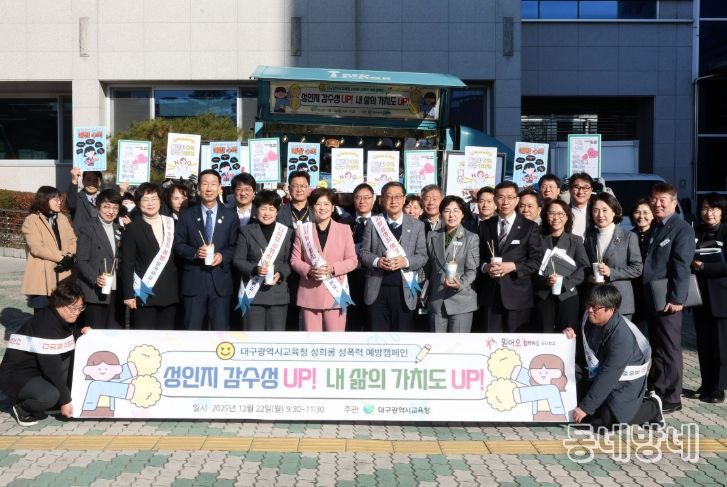 동네방네 김형규 기자 | 대구시교육청은 12월 22일 오전 9시 30분부터 11시 30분까지 시교육청 야외 마당에서 ‘직장 내 성희롱·성폭력 예방 및 디지털 성범죄 예방 캠페인’을 실시했다.