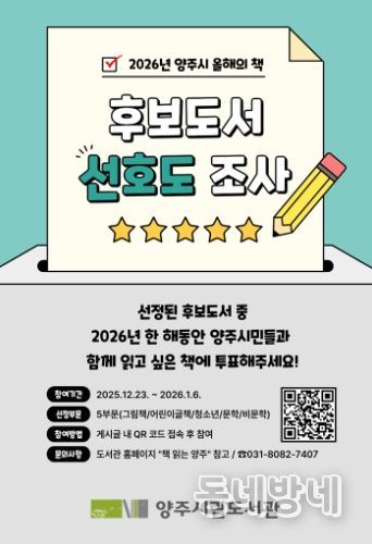 동네방네 김형규 기자 | 양주시가 오는 12월 23일부터 2026년 양주시 『올해의 책』 선정을 위한 시민 설문조사를 실시한다.