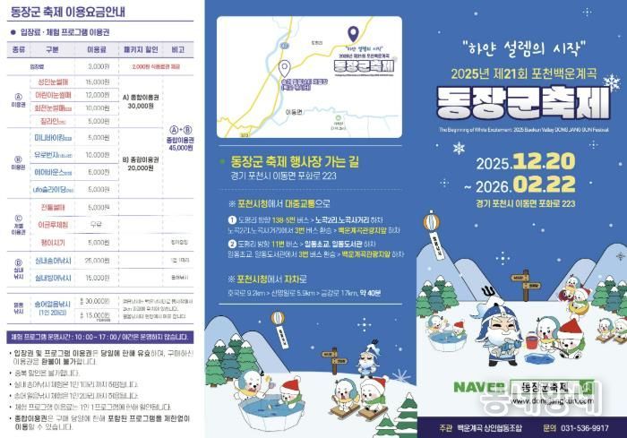 백운계곡상인협동조합 이종진 이사장은 “올해도 조합원들과 함께 방문객 모두가 안전하고 즐겁게 참여할 수 있도록 축제를 준비했다”며 “백운계곡 동장군 축제를 통해 겨울의 즐거움과 함께 소중한 추억을 만들길 바란다”고 말했다.