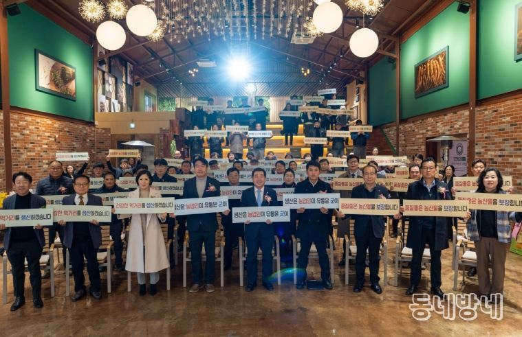 동네방네 김형규 기자 | 충북 증평군은 23일 도안창고플러스에서 먹거리통합지원센터 출하 농가 조직인 ‘증평군 먹거리 생산자 연합회’ 발대식을 열고 지역 먹거리 선순환 체계 구축을 위한 첫걸음을 내디뎠다.