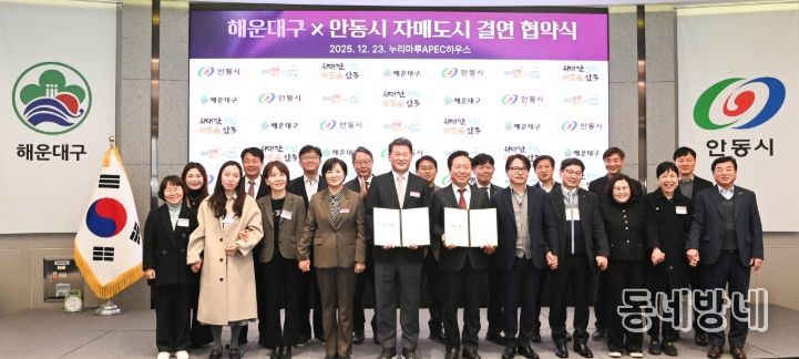 동네방네 김형규 기자 | 해운대구는 12월 23일, 부산 누리마루 APEC하우스에서 경상북도 안동시(시장 권기창)와 자매결연 협약을 체결했다.