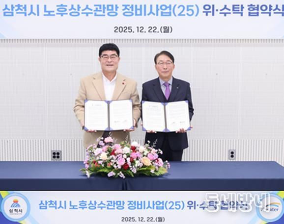 동네방네 김형규 기자 | 삼척시는 노후 상수관망 정비사업의 효율적인 추진을 위해 12월 22일 오전 11시, 삼척시청 소회의실에서 한국수자원공사(K-water) 한강유역본부와 위수탁 협약을 체결했다.